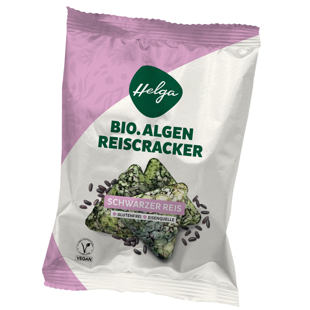 Die HELGA BIO ALGEN-REISCRACKER sind grün, knusprig und perfekt geeignet, wenn man einen würzig-leichten Snack reich an Nährstoffen möchte. Die Süßwasser Mikroalge verleiht den Crackern ihren unverwechselbar guten Geschmack und bereichert die Cracker mit wertvollem Eisen. Eine Packung enthält 50 g.
